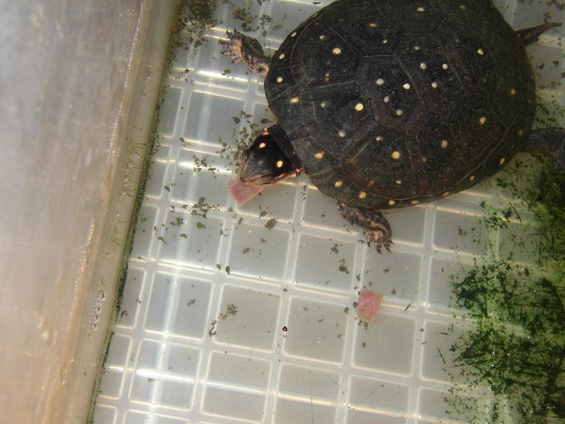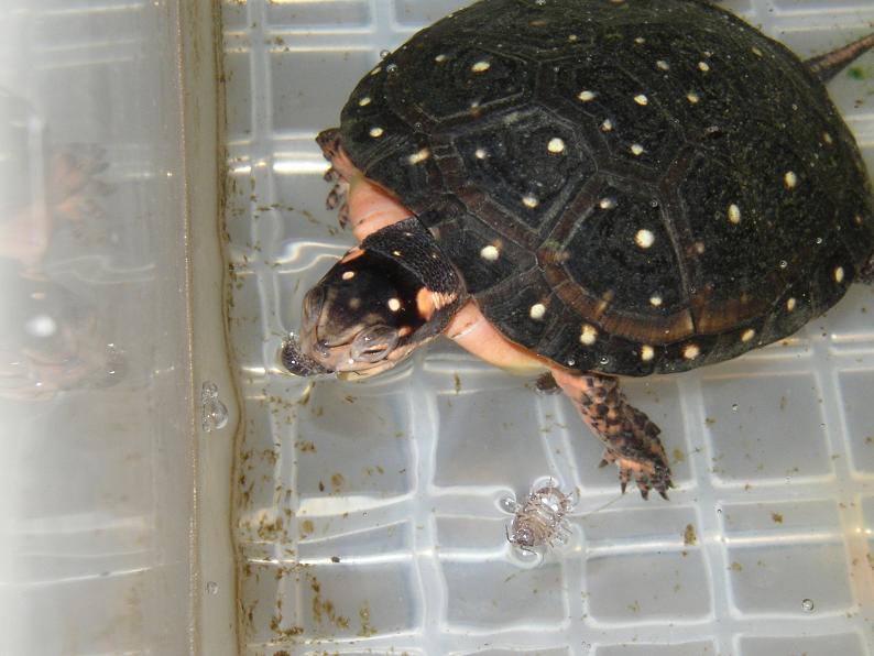 体調に異変はなく、良く食べ、成長もしている。通常、キボシの甲の脱皮はそんな綺麗には剥がれないようだ。本来は時間を掛けて少しずつ剥がれて行くところを、下の新しい甲羅が出来上がらない内に、強引に剥がれてしまったように思う。ちなみに、これって黄星模様は再生するんだろうか・・・。