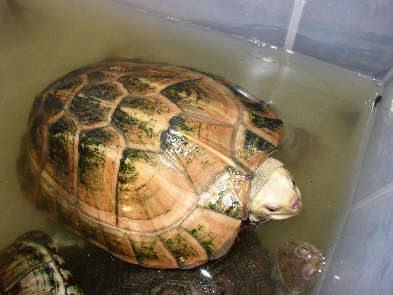 ビバリウムガイド38号の新着記事でベンガルが紹介されていて、その中で『甲羅が腐りやすいビルマに比べて飼いやすい』とか『この仲間にしてはやや気が荒い』という記述がある。”甲羅が腐りやすいビルマ”というのがどの亜種を指しているか不明だけど、うちの個体はこのベンガル像には丁度当てはまる。水道水で全換水でもへっちゃらだし、気性も荒い(オスだからかもしれないけど)。ベンガルだと最大34cmか・・・。ただ、ネットで『ベンガルは小型種』という意見も見かけた事がある。判らない事だらけですな。