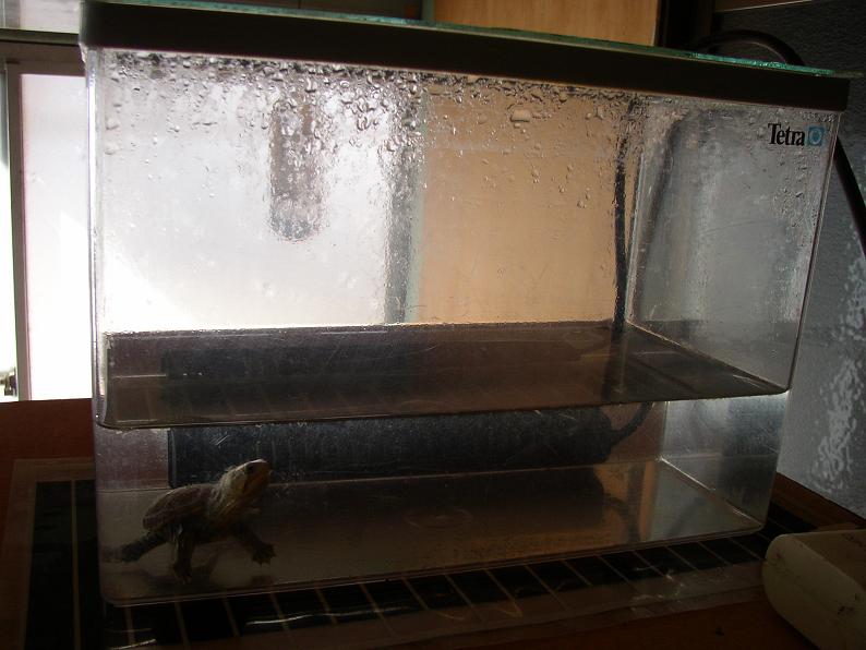 か○だいで格安で入手した中古のプラ水槽。鑑賞能力が急激に上昇した。なお、下のピタリ適温は既に電源を落として無意味です。その内どかします。多分。