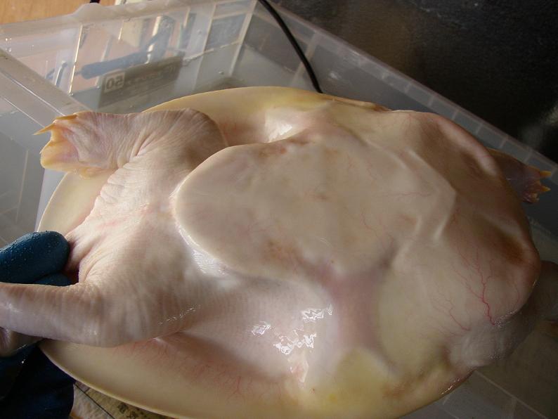 インドシナオオスッポン。以前に比べて、腹甲の前縁が発達して、厚くなったような気がする。裏返してみると、前方に2つの凹みが目立つ。これも、以前はこんなに顕著ではなかった。