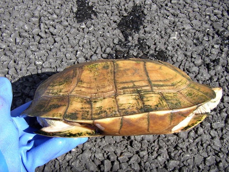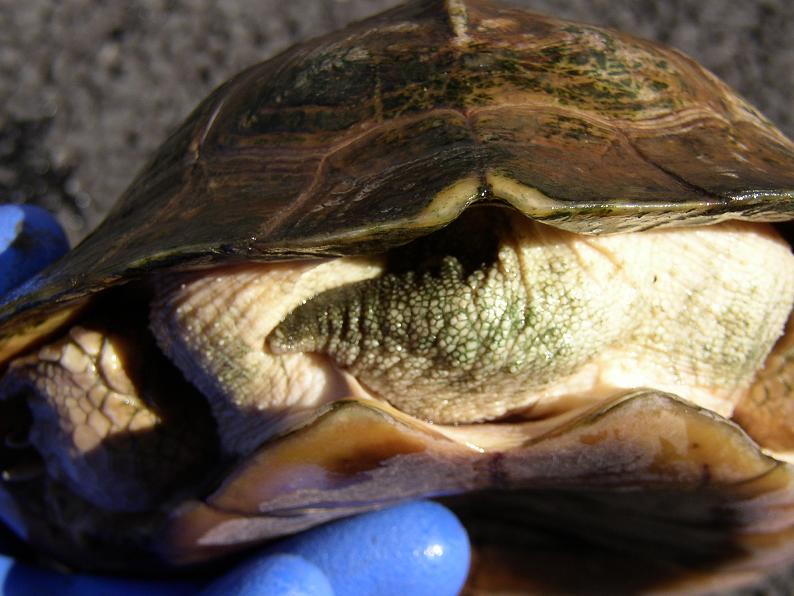 腹甲。若い頃はほぼ平らだったはずだが、何時の間にか気持ち悪いくらい凹んでた。爪が思いのほか鋭い。