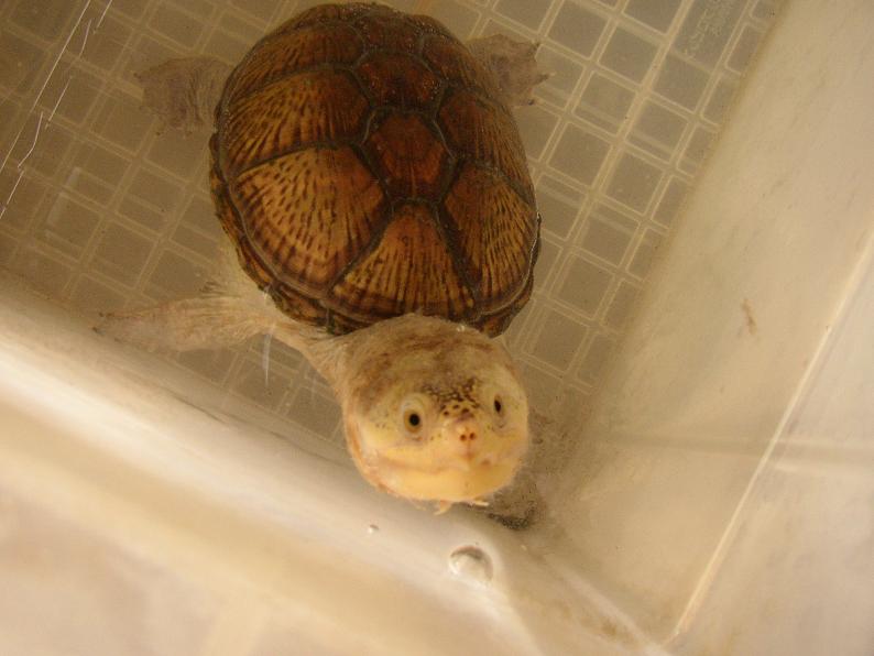 飼育に慣れたらしばらく放置気味にしてしまい、あまり成長してない(直線甲長でまだ12cm弱)。これはいかんと思い、ケースを一回り大きいものに代え、積極的に給餌するようにして、最近また成長線が伸びて来た。もう少し大きくしてやりたい。