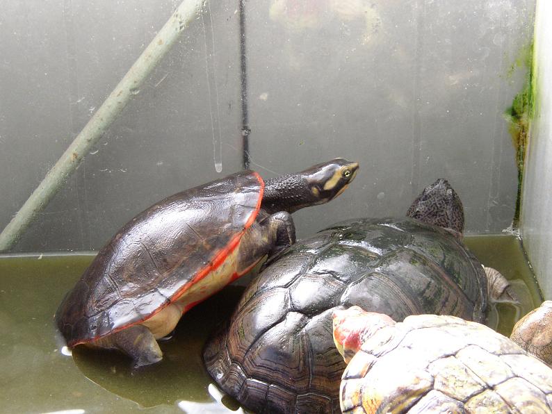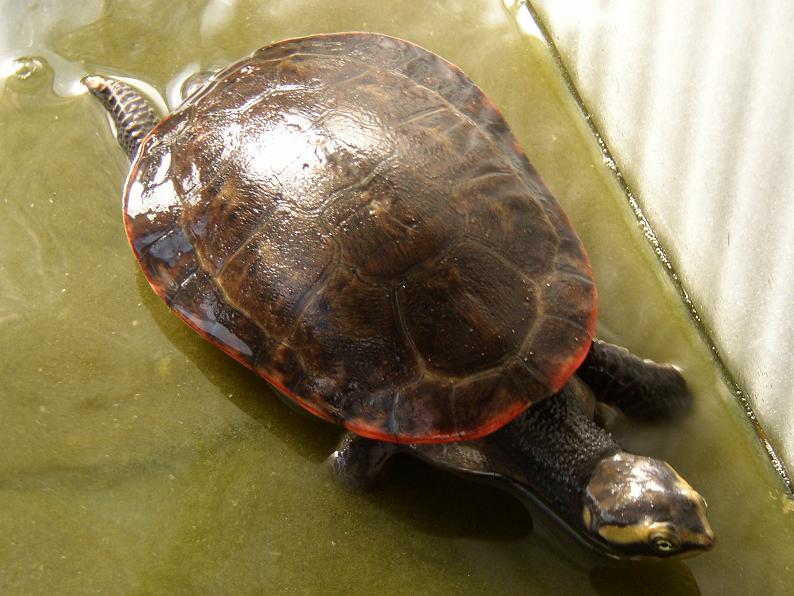 ・・・と持ち上げた後で、懺悔を1つ。こいつは2回か3回ほど(うろ覚え)、室内無加温で越冬させた事がある(水が凍るまでは行かない)。しかし例年より寒かった冬、ちょっと様子を確認したら口を半開きでぐったりしてて、慌てて加温水槽に移した。正直手遅れかと思ったが、何時の間にか回復し、その後はトラブルらしいトラブルもなく生きてる。意外なほど低温に強いようだが、冬は素直に加温して飼うべき種類だと思う。