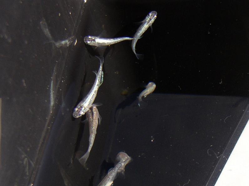 メダカも品評会が。右は『青色透明鱗』という名前で展示されていた。透けた体に青いラインが印象的で、何となく南米産カラシンの仲間を思わせる。頬の赤も相まって可愛らしい。何年か待てば普及するかな?