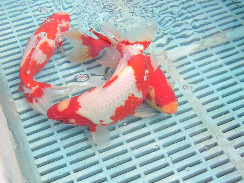 平賀養殖場の三尾更紗和金。流石の美しさ。