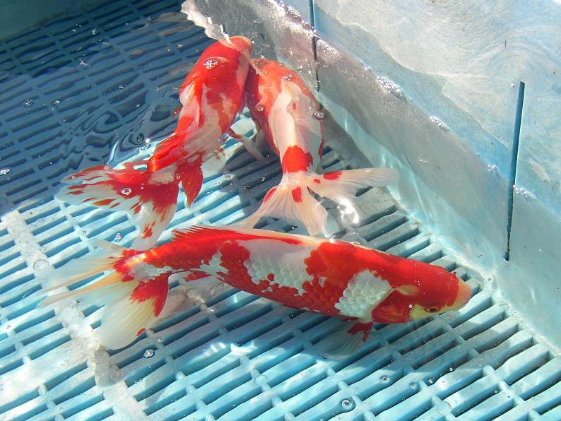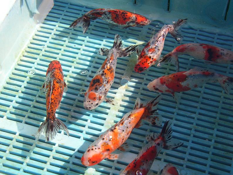 良い更紗の血筋を維持していらっしゃるのだろう。オランダや琉金も凄く綺麗。