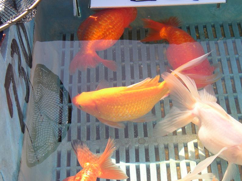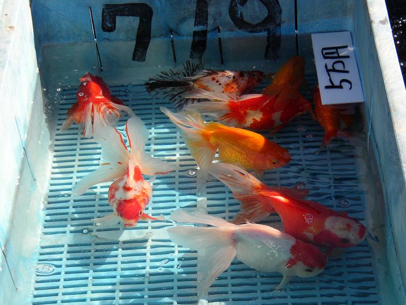 今回、一番目を奪われた柳出目金。出展者も会心の1尾じゃなかろうか。これだけ凄い魚でも、らんちゅう等と比べると遥かに安い価格だった。品評会の出展魚は軒並み高値が付けられているが、この魚をもってしてもこの値段なのか・・・と感じた。