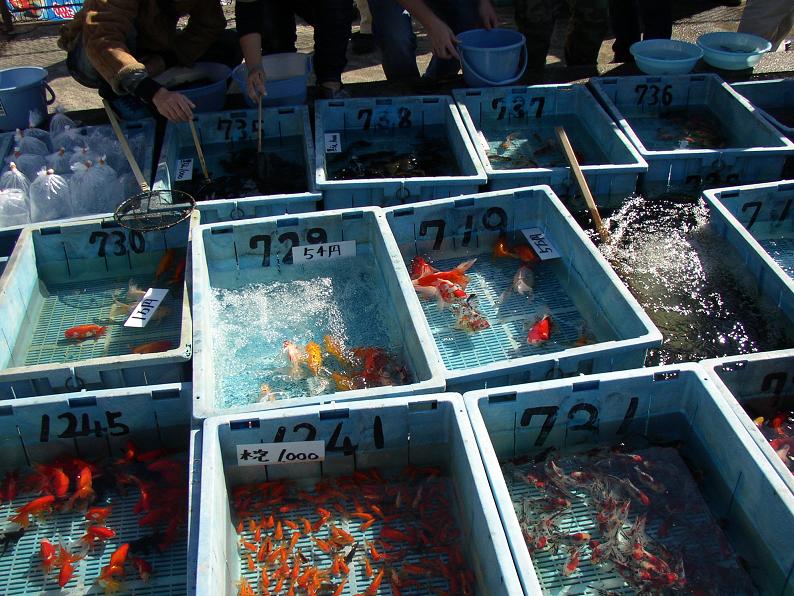 自分で掬って買えるものは争奪戦。昼過ぎまでは近くで見るのも一苦労。