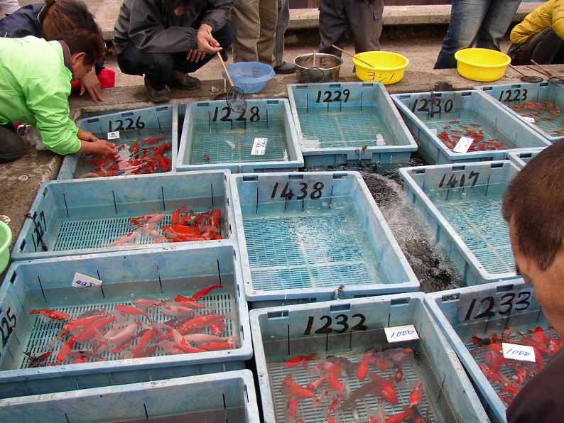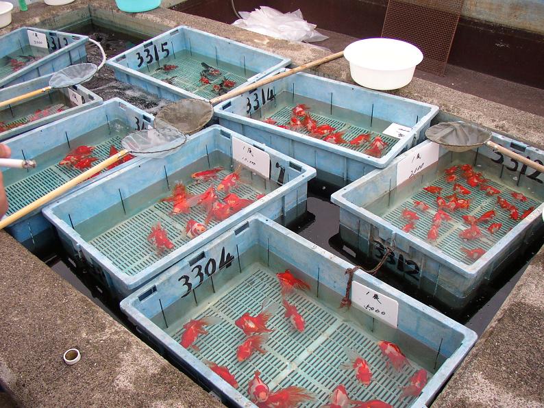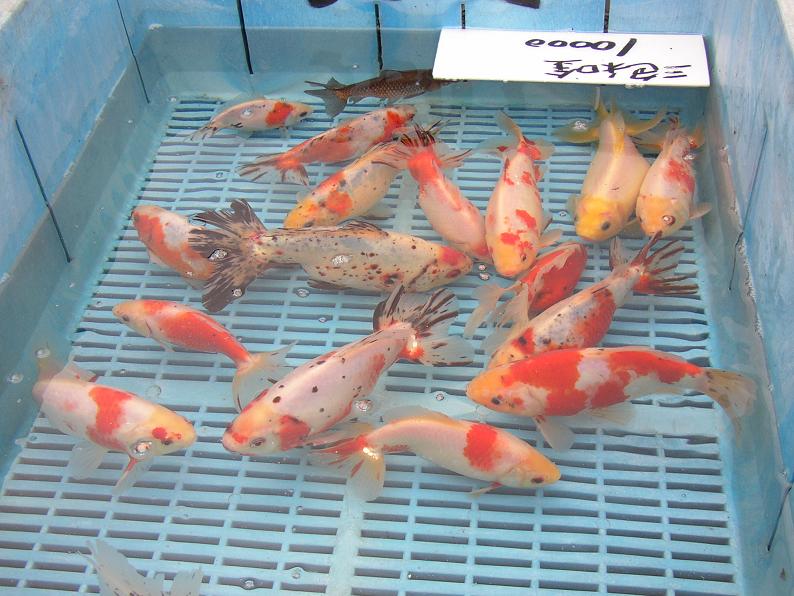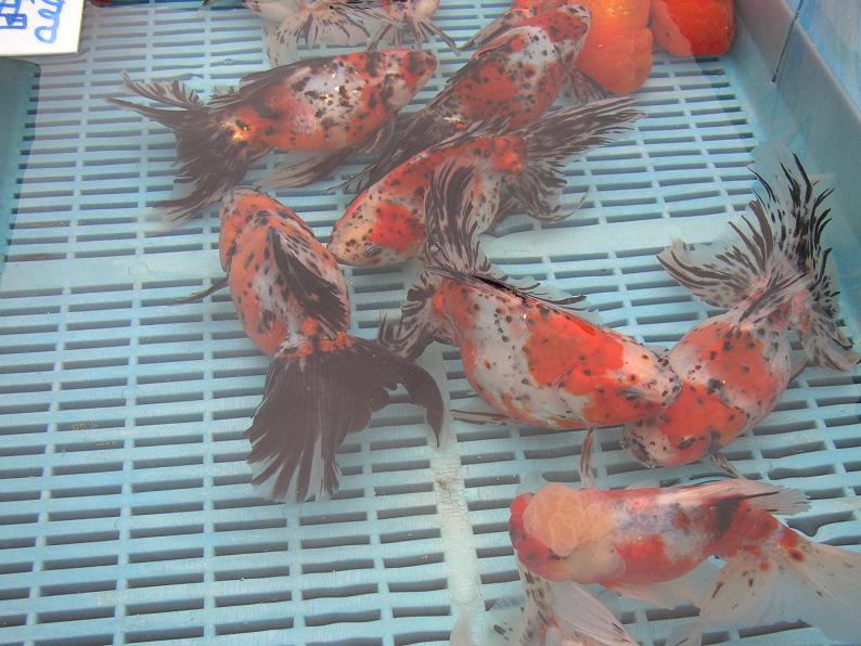 個人的に好きなのは和金。平賀養魚場の立派な和金達に惚れ惚れ。三色和金の中に1尾だけ鮒尾のがいて、かなり欲しかった。でも良魚はやはり高い・・・(通常よりは相当安いんだけど)。結局、小さ目の桜和金1尾だけ買った。不完全燃焼。
