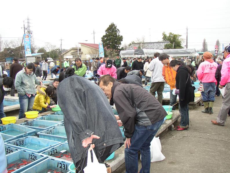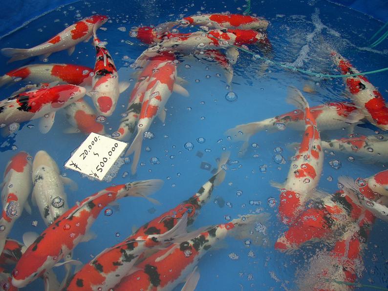 今日はかなり肌寒かったけど、開場から1時間以上経ってもこの混み様。隣県からも愛好家が大挙して押し寄せ、開場の数時間前から行列が出来るらしい。業界で名の知れた養魚場からの直売とあって、みんな夢中で選んでる。ただ、コテコテの愛好家よりは家族連れの方が圧倒的に多い。地域でも認知されてるようだ。