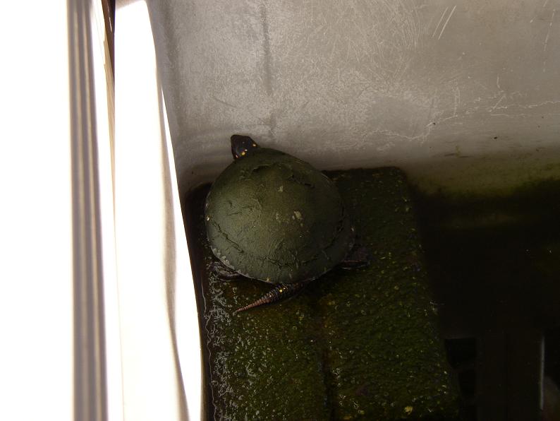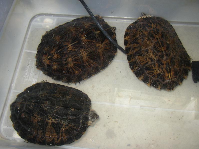 一昨年の東レプで買った個体。購入当初より少し成長した。当初はメスだと思ってたが、尾が若干太く目立つようになり、メスに比べ相対的に甲が薄い(最近ようやく違いが判るようになって来た)。どうやらオスのようだ。基本的に協調性はあるが、マルガメにしては性格も乱暴で、他個体の尾を噛んで短くしてしまった。マルガメはおとなしいからと油断していた飼主のミスだ。しかし、繁殖を狙うならこれくらい荒いオスの方が良いかもしれない。