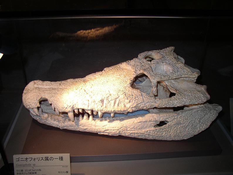 古代ワニ・ゴニオフォリスの頭骨。