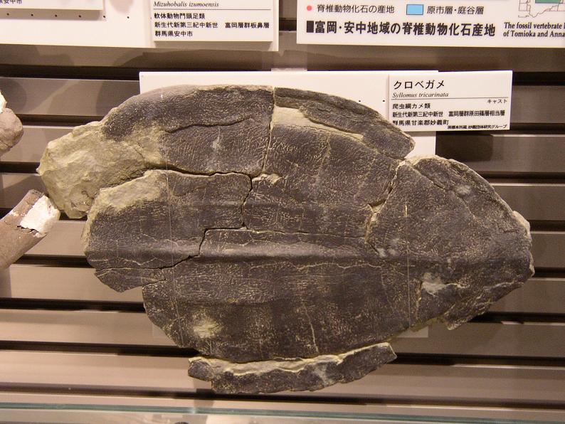 県内で発掘された、クロベガメの甲羅の化石。目測で直線甲長40cmくらいか。