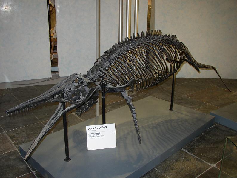 ステノプテリギウス、プラテカルプス。尾の形状だけ見るとそうは思えないが、水中生活に適応した爬虫類なんだと。