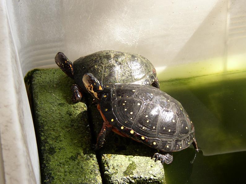 キバラガメのオス。画像だと迫力満点に見えるが、多分甲長は15~16cm程度。昨年辺りから第2~3椎甲板が濁り始めて、最初は脱皮不全かと思ったが、どうやら加齢に伴う色彩変化っぽい。飼育開始以来、盛っているところを1度も見た事がないが、繁殖させても持て余しそうなので良いか。