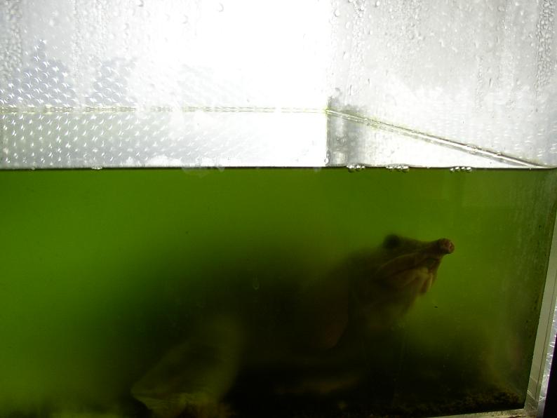 店ではレプトミンスーパーを与えていたそうだが、幸い、我が家に来てからはレプトミンやカメプロスを普通に食べる他、葉野菜も食べてくれている。このサイズでも葉野菜を与えると意外なほど食べるのを初めて知った。”ベビーは肉食傾向が強い”という固定観念に囚われると、却って失敗するのかもしれない。