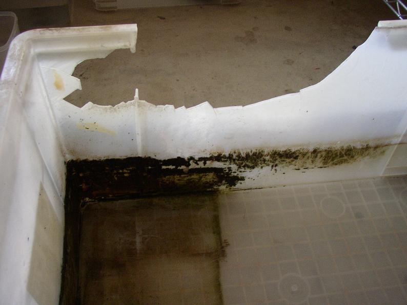 白変ビルマを収容していた衣装ケース。横に穴は開いていたものの『まだ平気でしょ』と油断していたら、その穴から崩壊を招いて脱走、1m下のコンクリート床に落下。記憶の限りで落下は通算5回目くらい。当のビルマは幸い餌を食べてはいるが、目に見えないダメージを蓄積していてもおかしくない。20cmを越えるようなカメの力を見くびるとエライ目に遭う。