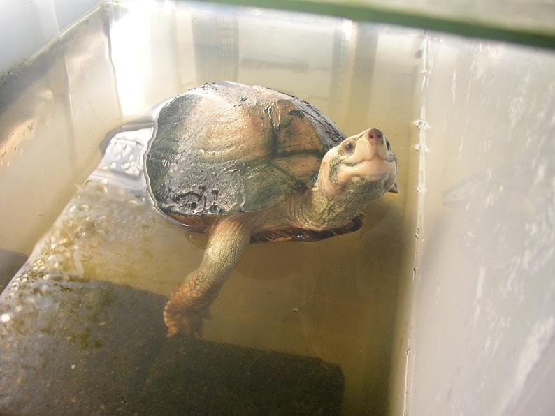 御覧の通り、甲羅はお見苦しい有様。2012年も、容器に浅く水を張って個別飼いを続けた。しかしながら、甲羅の水に触れている部分は際限なくガサついて行くように感じた。特に夏場は、陸地はあっても水に浸かりっ放しでいる姿を良く見たが、後日その浸かっていた部分を乾かしたら新たにガサついてるのを発見・・・というパターンが多かった。チズガメやドロガメ等にも良く見られるこの症状、何とかならないものか・・・