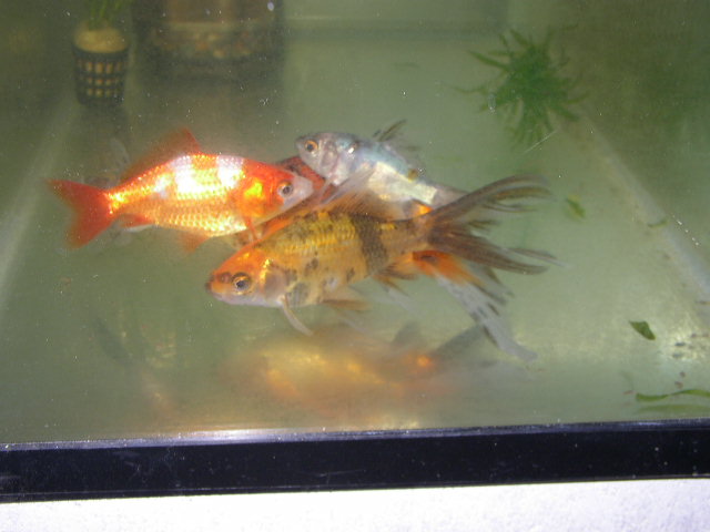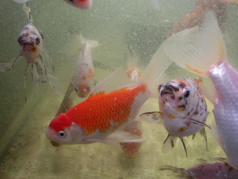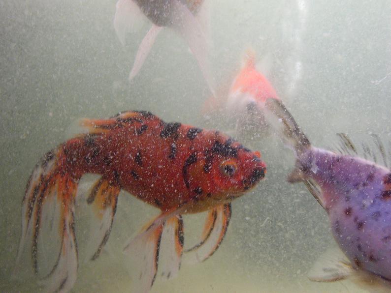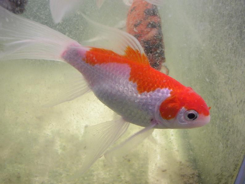 コメットにあらず、庄内金魚。本品種の御当地・山形県に出向いた際に、生産者から直接購入。上述の更紗和金と同じ水槽で区別なく飼育してるけど、緋が全く褪せない(ちなみに、価格で4~5段階に分けられた中の、2番目に安いグレードを購入)。本品種を生産する業者はかなり限られてるけど、観賞魚として非常に優秀な系統を維持されていると思う。和金や朱文金と比べても、体質的にも非常に強く感じる。肉瘤が出て来ているのも特徴。