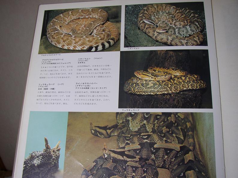 一般人には撮影出来ない写真の数々。こういう風に毒ヘビをビジュアル的に紹介するのは、動物園にこそやって欲しい。この写真を見て、子供心に『マムシやハブって綺麗だなぁ』と思ったのを覚えてる。嫌な子供だ。