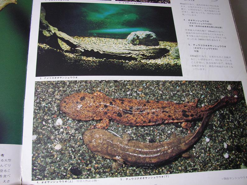 製作側の意図的なものかどうかは知らないが、結果的にマニアにウケそうな写真も多い。オオサンショウウオ3種がカラー写真で並ぶなんて。