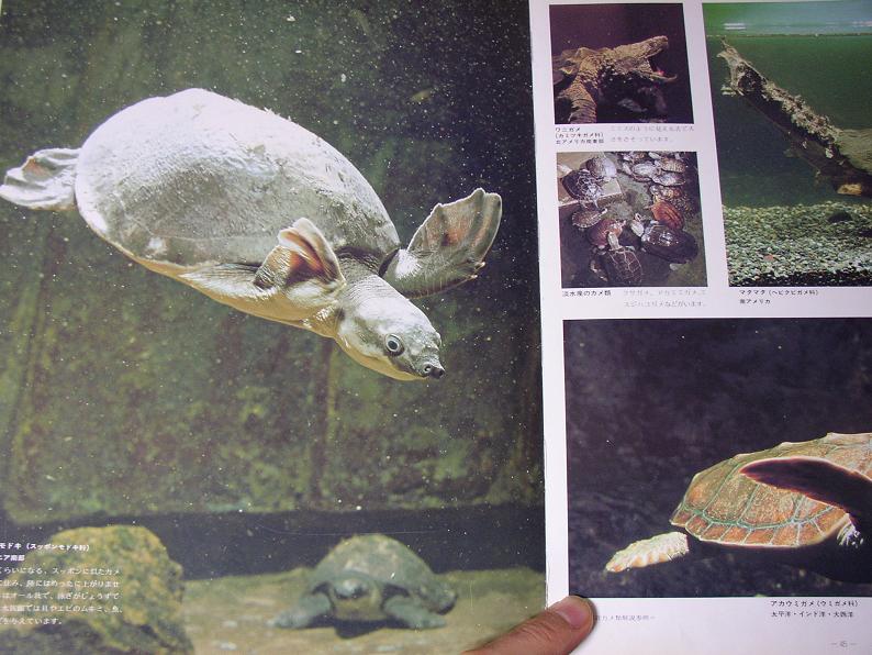 昔見たこの写真のイメージが強かったので、スッポンモドキは一般家庭で飼うカメじゃないと思ってた。大人になってから、商業ルートで販売されてる事にびっくりし、扱いの酷さに更にびっくりした。右ページのさり気ない小さな写真には別の意味でときめいた。ミスジハコガメが雑多に扱われてる辺り、時代を感じる。
