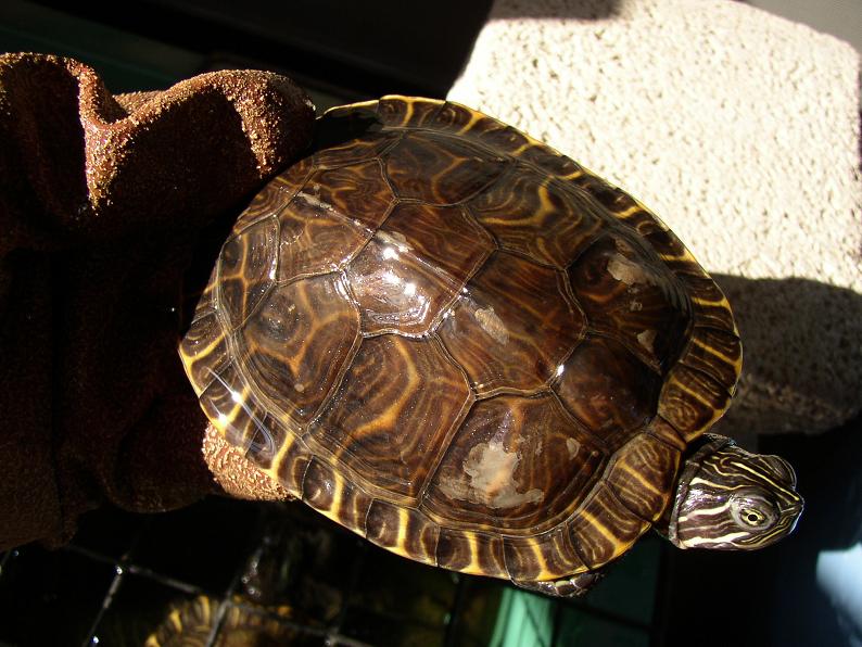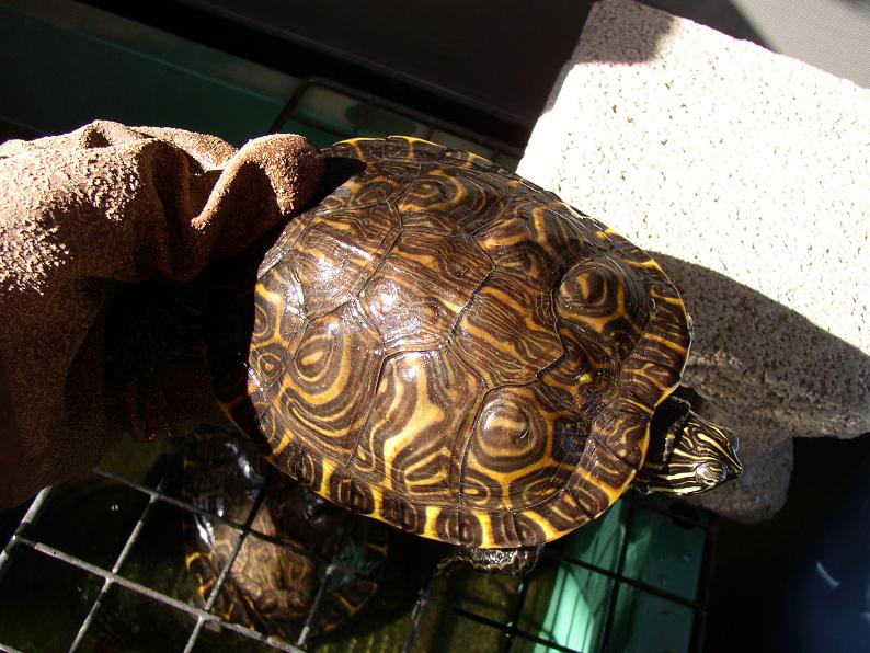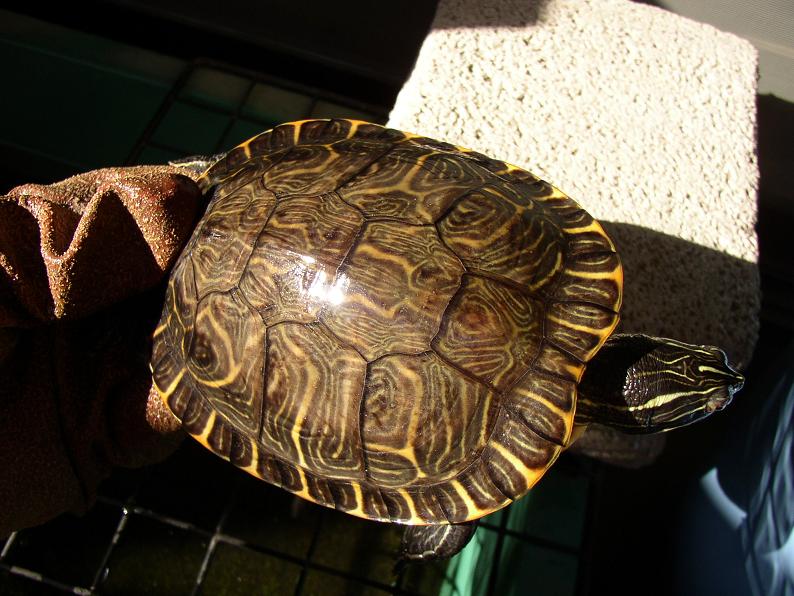 アメリカヌマガメは前年からの古い甲羅が剥け、今の時期が一番綺麗。
