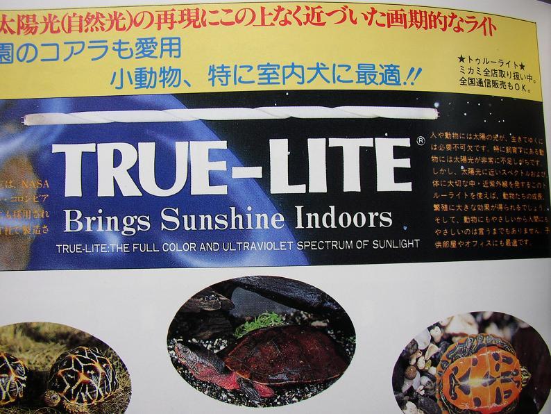 この広告や、業界全体のプッシュに感化されて、自分もトゥルーライトを買った。冬季の加温飼育に大変お世話になった。ヒーターやサーモの存在も知り、冬でもカメを飼えるようになったのは、自分にとって一大転機だった(道を踏み外し始めた、とも言う)。それまでは秋の縁日でミドリガメを持ち帰っても、ろくに食べずに死ぬだけだったのが、こういった飼育器具のお陰で育てられるようになった。