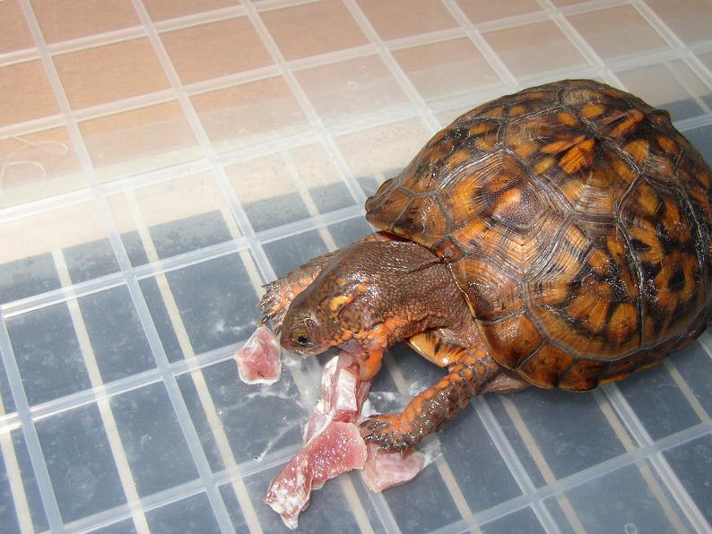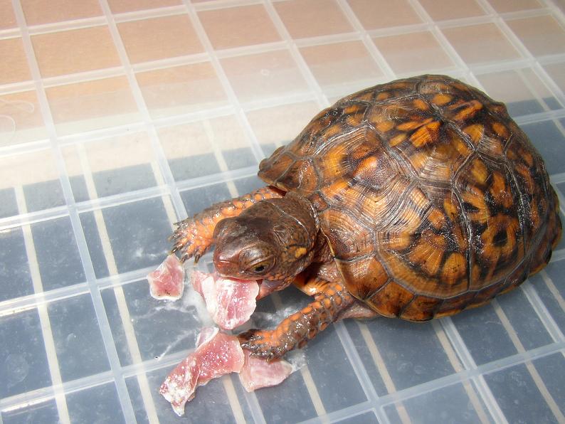 まだ性別は断定出来ないけど、かなりメスっぽい。アメハコのメスをベビーから育てた経験はないけど、過去にガルフ疑惑トウブのオスを育てた経験からすると、オスらしさを全然感じない。オスなら、このサイズになればかなり活発に動き回る印象がある。餌の時も、こいつは近寄って来るだけで、餌くれダンスはしない。性格も、色彩も、顔付きもメスらしく思える。唯一、5/1の日記で触れた腹の凹みだけが引っ掛かるなぁ。