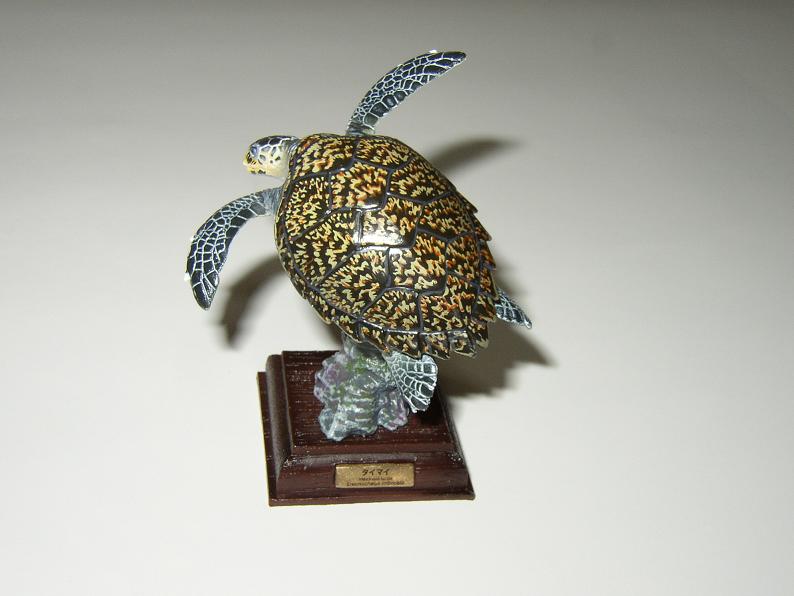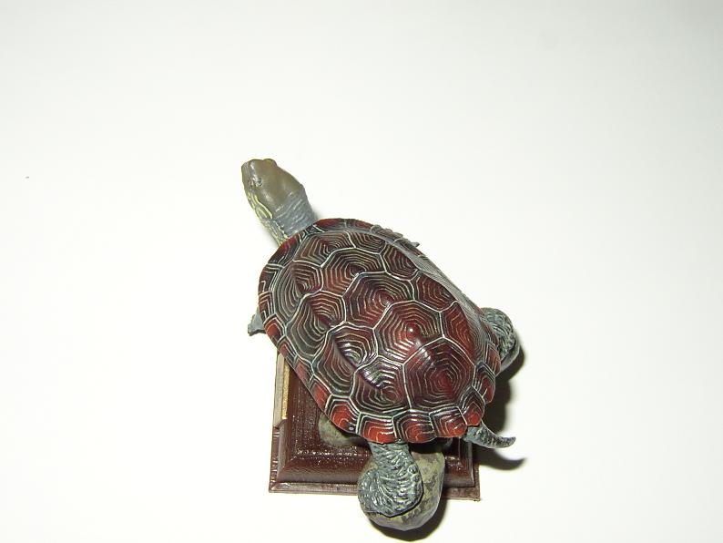 これまで発表されて来た数々のカメフィギュアと比較しても、甲羅の質感の表現はピカイチかと思う。甲板も申し訳程度に線を刻んでる訳じゃなく、ちゃんと成長線を表現してるのが素晴らしい。キールや皺まで、細部もかなり造り込まれてる。個人的にツボだったのは、セマルの顔がちゃんとヤエヤマセマルっぽいところ。これでチュウゴクセマルみたいな顔だったらちょっと残念だし。