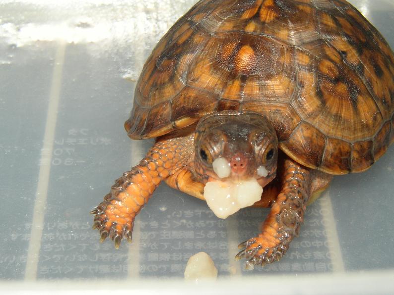 野生下で植物質を多く採るという事は知ってたものの、飼育下で具体的にどうすればいいか、そこまで考えが及ばなかった。カメの飼育に多少慣れて、配合飼料だけで大丈夫だろうという(根拠のない)慢心が、正直あった。また、この趣味をある程度知って来ると、色々な種類に目移りしたり、希少価値に揺れ動きがち。正直、フロリダアカハラの存在が自分の中で薄れてた。
