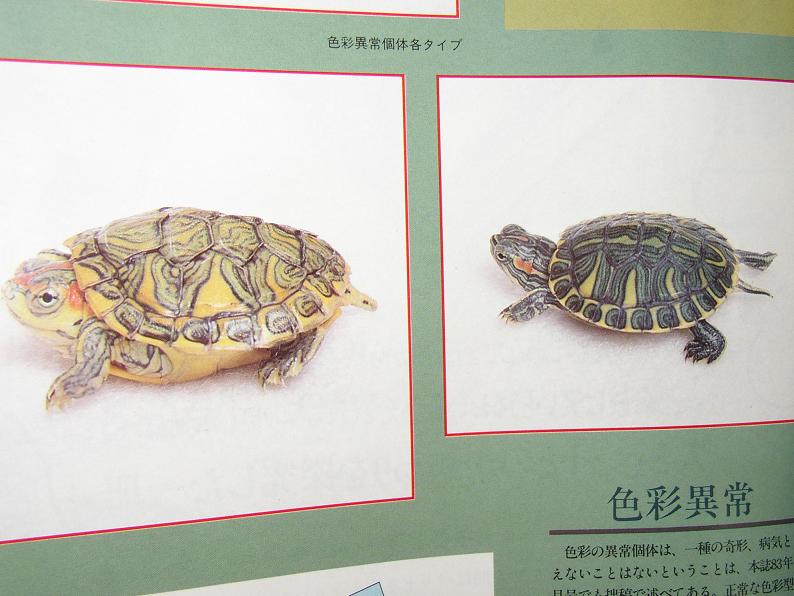 ↑カラー写真で色変ミドリガメの特集。たった2ページだけど、爬虫類専門誌もネットもなかった当時ではとても珍しい特集。たったこれだけでも心をときめかせていた。発刊から数年後、中学時代に古本屋で買ったんだけど、立ち読み中にこのページを見つけた時は小躍りしたよ。