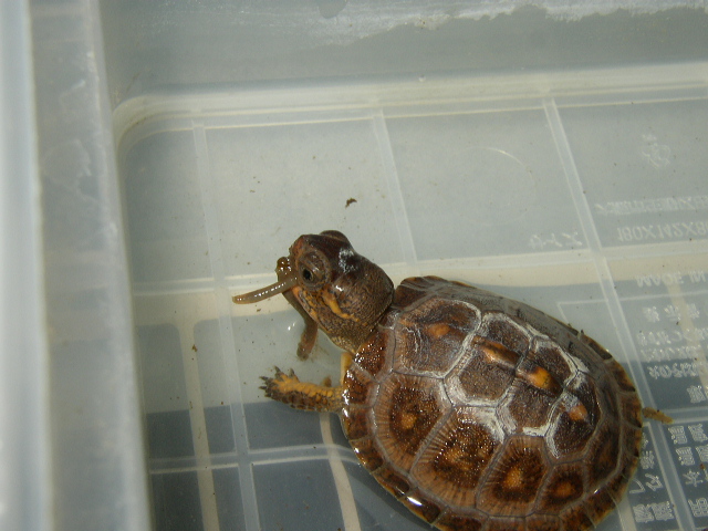 飼育については概ね問題ないが、2号に比べると4号は食欲にムラがあるかな。一番困ってるのが、タッパ内の水を抜くと、途端に食欲が薄れる事。サプリメントを効率良く摂取させる為、たまに水を抜き、ミミズやピンクマウスを刻んで各種サプリメントを添加して与える(この時ばかりは親兄弟にも見られたくない・・・)訳だが、その方法だとこいつはほぼ必ず食べ残す。ピンクを丸々1匹分与えると、半分以上は残す。3~4時間くらい放置しておいても食べず、もう捨てようかと考えるところだが、汚れるのを覚悟でそのままタッパ内に水(今の時期はぬるま湯)を張ると、突然スイッチが入ったように食べ出したりする。水と一緒じゃないと上手く飲み込めないのかね?この水への依存症っぷりはちょっと面倒。まあ、これだけ順調に育ってればそんなに心配要らないか。大きくなるまでに少しずつ直ればね。