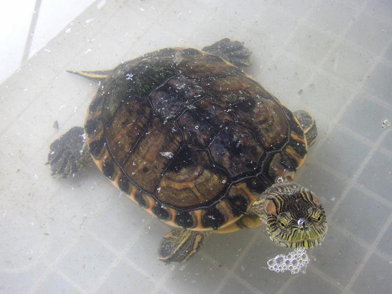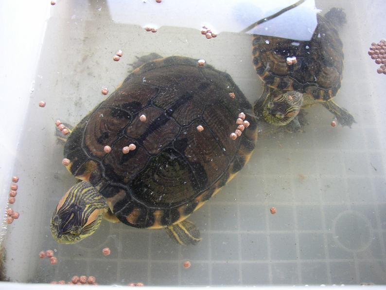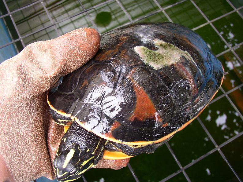改めて思うが、Pseudemysの仲間も丈夫ではあるものの、Trachemysに比べると若干脆い。同居させていると、Pseudemysの方が甲板が薄く、痛み易い印象。
