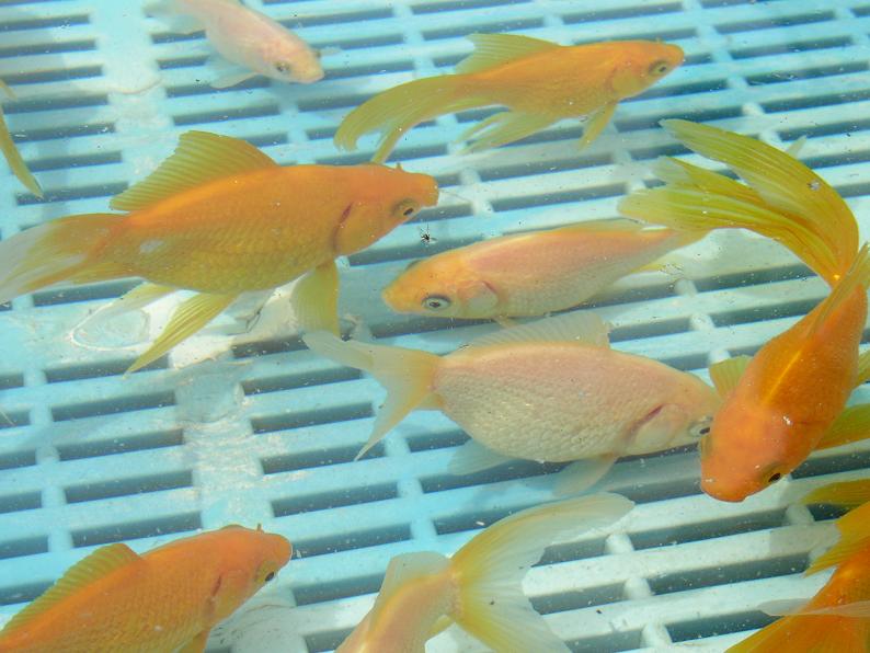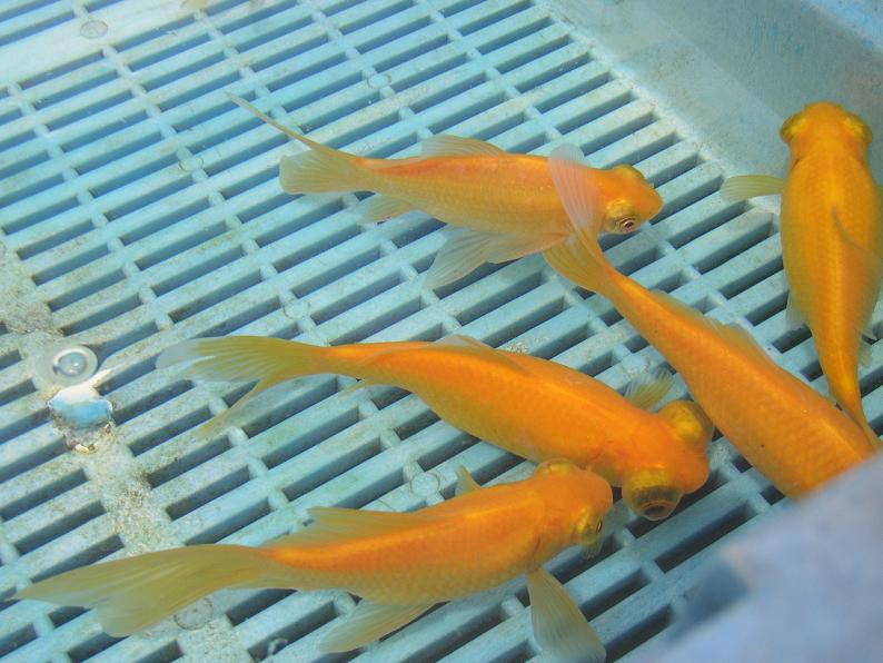 イエロー系の金魚も多様化して来た。形の面白い品種に、この色彩は似合うと思う。