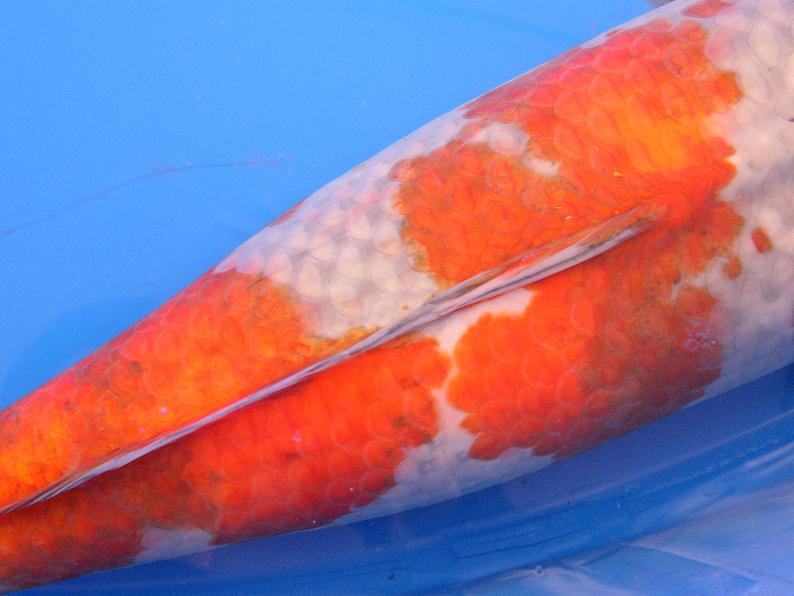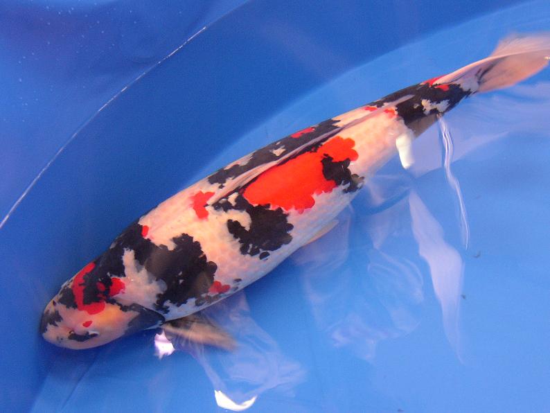 今回、会場で一番感動した1匹。『モナリザ』と名付けられた、大日養鯉場の三色。体躯も凄いが、色の厚みが凄まじい。素人目にも凄さが伝わる。賞を貰う魚よりも、こういうのを直に見られる事の方が嬉しいなと思う。