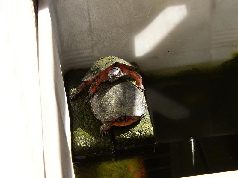 マルガメの仲間は、人が見ている時は頸を引っ込めてあまり動かないし、持ち上げると糞尿を撒き散らす。クサガメのような馴れ方はとてもしそうにない。それでも、見ていない時は案外動き回る様子。