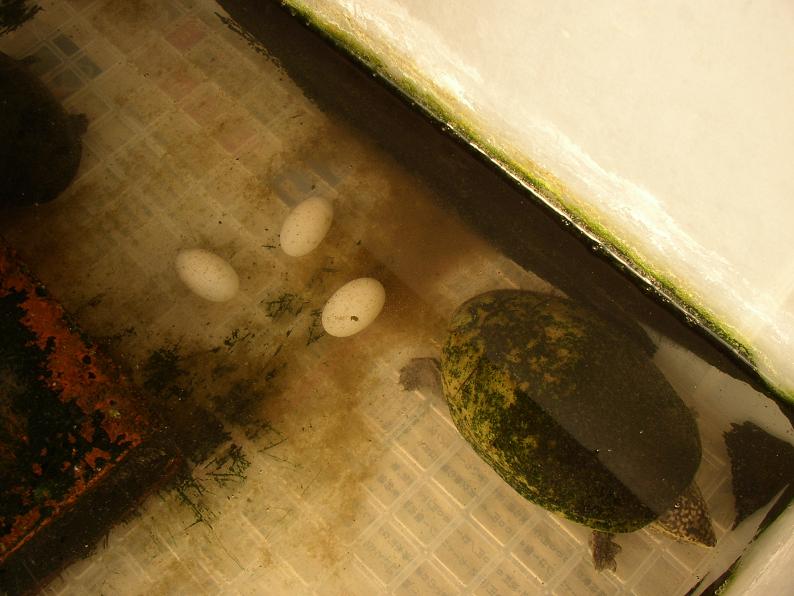 何日も経ってるっぽいから孵化は無理だな。メスはとりあえずタッパに移して、少しずつ加温中。このまま春まで加温飼育コース決定。加温飼育で栄養付けたら、また変なタイミングで産みやしないか心配。
