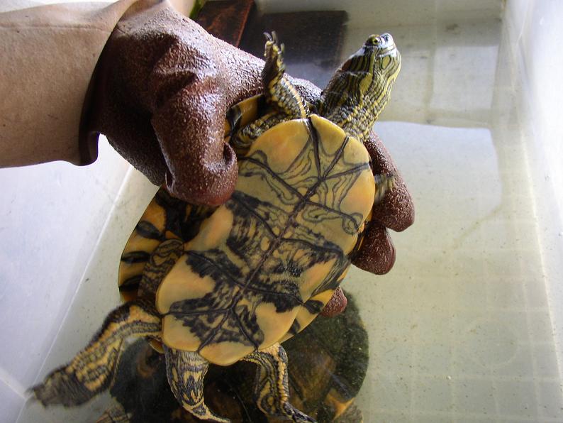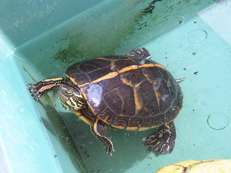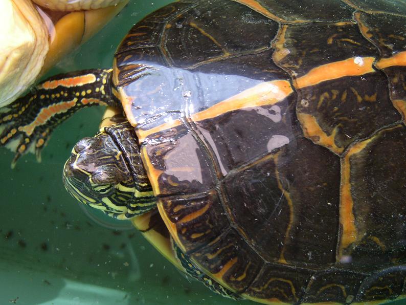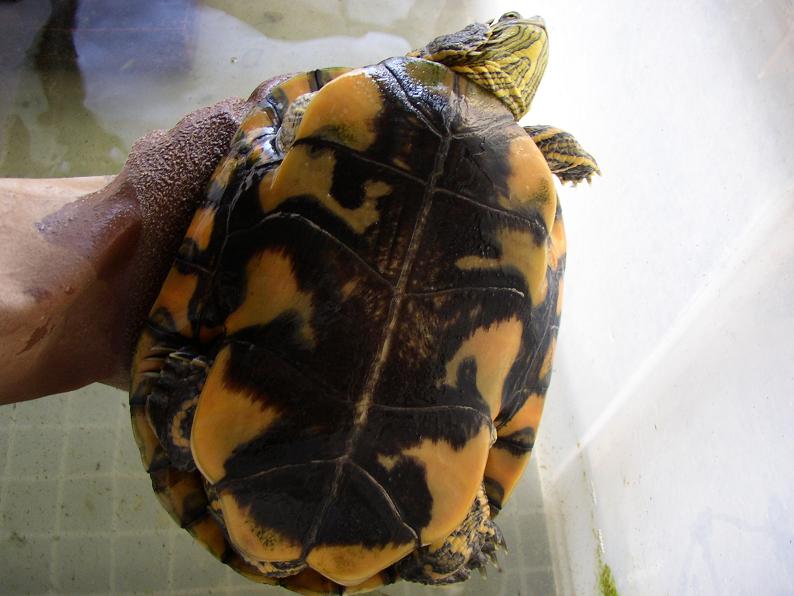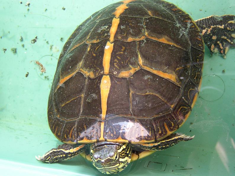 セスジニシキガメ。そういえば結構長いなと思って確認したら、ベビーから育てて、この秋で丁度10年。にもかかわらず甲長は12cmほどで、ここ数年はなかなか伸びない。トウブやセイブのアダルトと見比べると、やっぱりセスジは小さいね。最大16cmらしいが、商業ルートでそんな大きな個体はなかなか見られない。実は最も日本の住宅事情に合ったカメではなかろうか。太陽光に当てられる環境はほぼ必須だが。