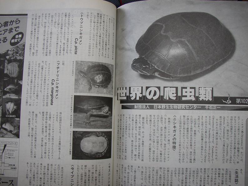 ふと思い出して、本棚から取り出したフィッシュマガジン1989年12月号。昔懐かしい、当時としては貴重な情報源だった千石先生の連載(タイトルの右下に注目。この時、既に連載102回!)。ニシキガメの仲間は古くから研究されており、この特集の時点で既に、近年クリーパーで特集された内容と大差ない。近年目新しい事といったら、学者によってセスジニシキガメが独立種とされる事くらいか。