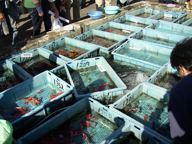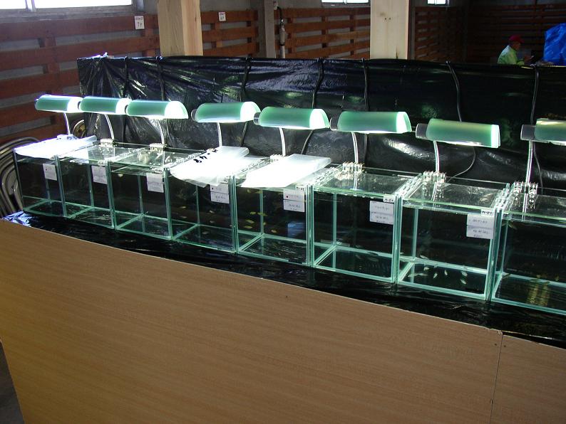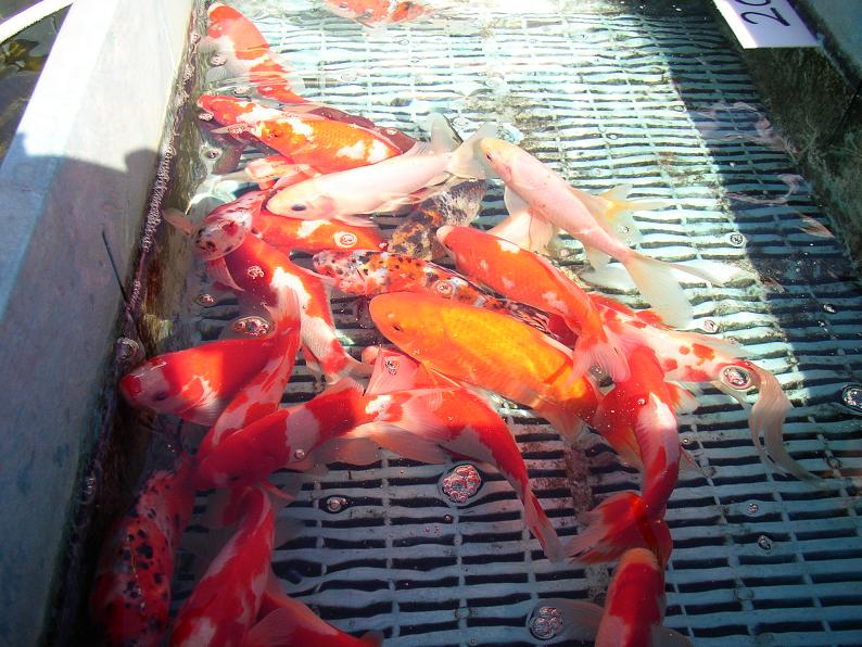 ここまで屋外での販売魚、ここからは品評会の出展魚達。