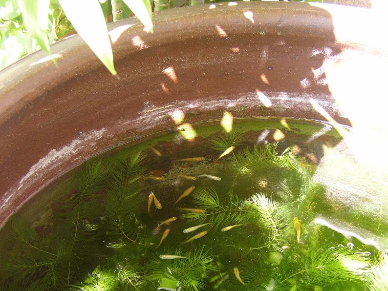 玄関先に置いた鉢でメダカを飼っている。数年前に自分が買った白メダカと、母が御友人から譲り受けたヒメダカが、特に繁殖に力は入れていないものの、細々と代を重ねている。数が減ったらホテイアオイを買って来て、減った分を殖やす感じ。今年は殖やさなかった。