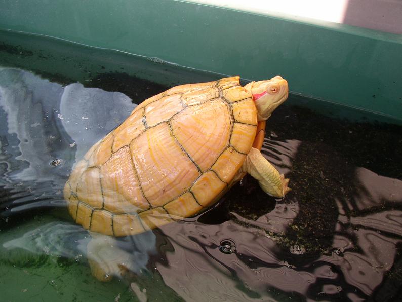 通常流通するものとはちょっと違うのだが、外見上はノーマル以外の何物でもない、ミシシッピアカミミガメ。確か1998年か1999年に、今はなき伊勢崎爬虫類族生態研(群馬や埼玉北部在住の方には懐かしい名前でしょう)で買ったから、16~17年か。何気に長い。