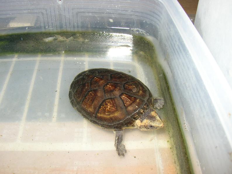 飼主の力量不足で甲が低い個体ばかり育ってしまった中、最も形良く育ってくれたGC2009-4号。ベビーの頃に偏食気味で、サプリメントを添加したピンクマウスを主体に与えていたのが、結果的に良かったのかね。