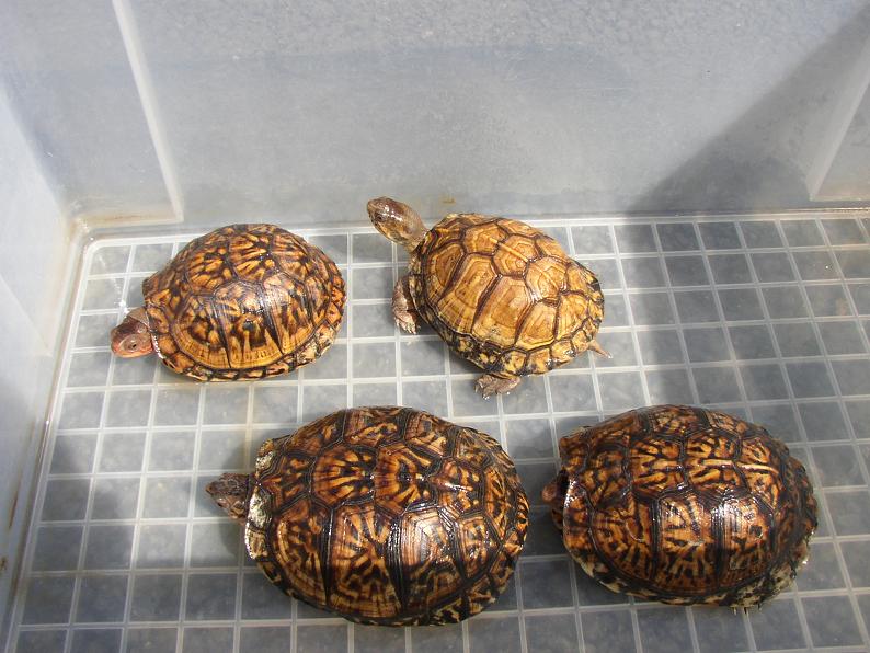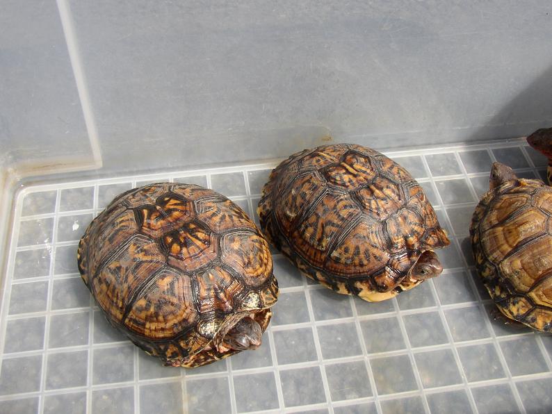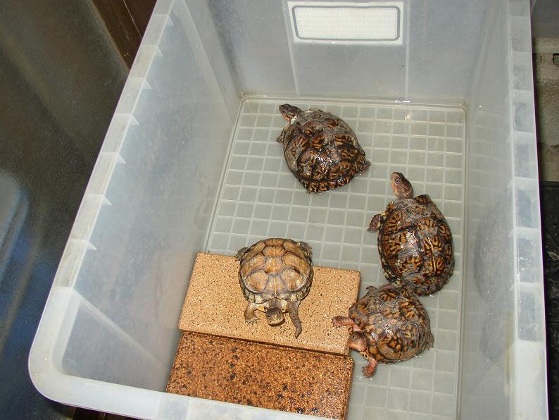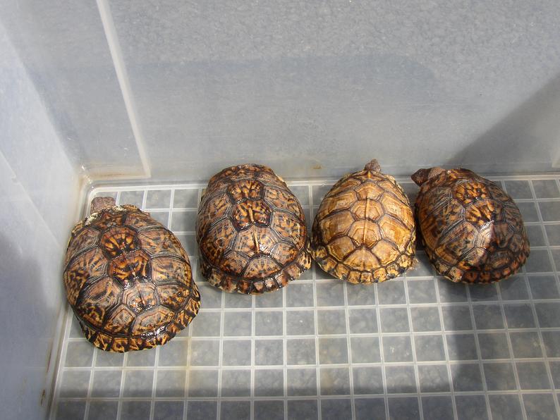 去年まで個別飼育してたが、今年は冬眠明けからまとめて管理してる。庭への放し飼いはまだ実現出来ず。甲羅はお見苦しい状態だが、どの個体も元気ではある。