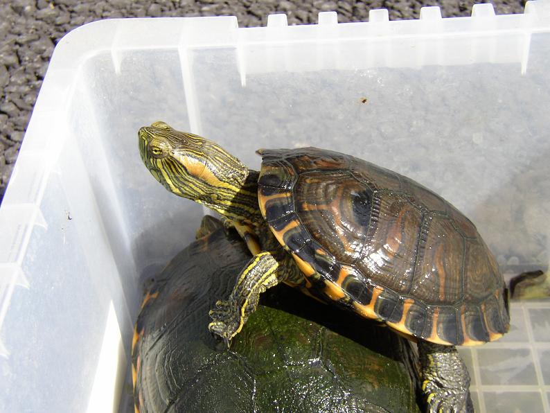 最近気になる存在。通年無加温で飼えそうなのがポイント高い。このカメで気になるのは、やはり日本の水との相性。何店かで見たが、国内に入荷して数ヶ月以内にもかかわらず、早くも甲羅に潰瘍が出来始めている個体がちらほら。頻繁な水換えはこのカメには合わないだろうなぁ。うちのアルゼンチンクジャクガメみたいな飼い方で行けるかしら?