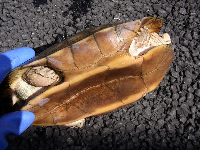 メスは甲の厚みがオスと全然違う。頭も大きい。