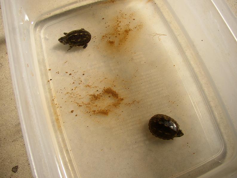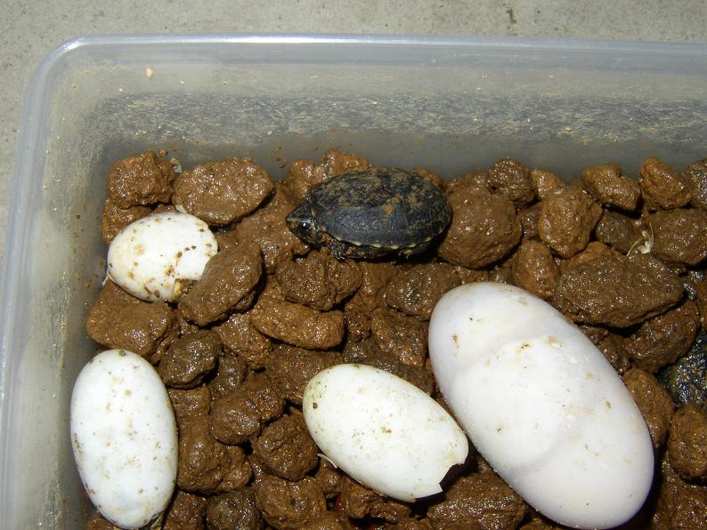 親個体は2008年3月に購入したWCのペア。ミスジドロガメに日本の冬は長過ぎるのか、最初の数年は繁殖したのに、長期間飼う内に繁殖しなくなって行く・・・という話も聞かれる。購入から4年半、持ち腹でない繁殖成功は1つの収穫かなと思う。偶然頼りでお恥ずかしい限りではありますが。