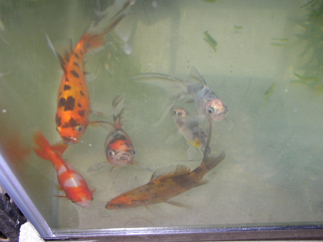 コメットにあらず、庄内金魚。本品種の御当地・山形県に出向いた際に、生産者から直接購入。上述の更紗和金と同じ水槽で区別なく飼育してるけど、緋が全く褪せない(ちなみに、価格で4~5段階に分けられた中の、2番目に安いグレードを購入)。本品種を生産する業者はかなり限られてるけど、観賞魚として非常に優秀な系統を維持されていると思う。和金や朱文金と比べても、体質的にも非常に強く感じる。肉瘤が出て来ているのも特徴。