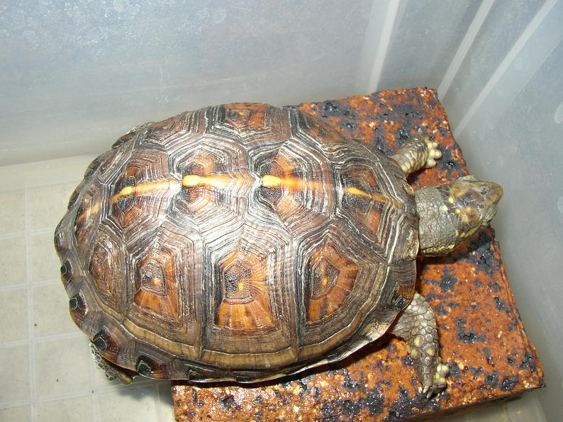 GC08、11cm。背甲が何ヶ所かガサついてしまったのと、甲にあまり厚みがない事を除けば、色彩的にはかなり綺麗な個体。ほぼメス確定。